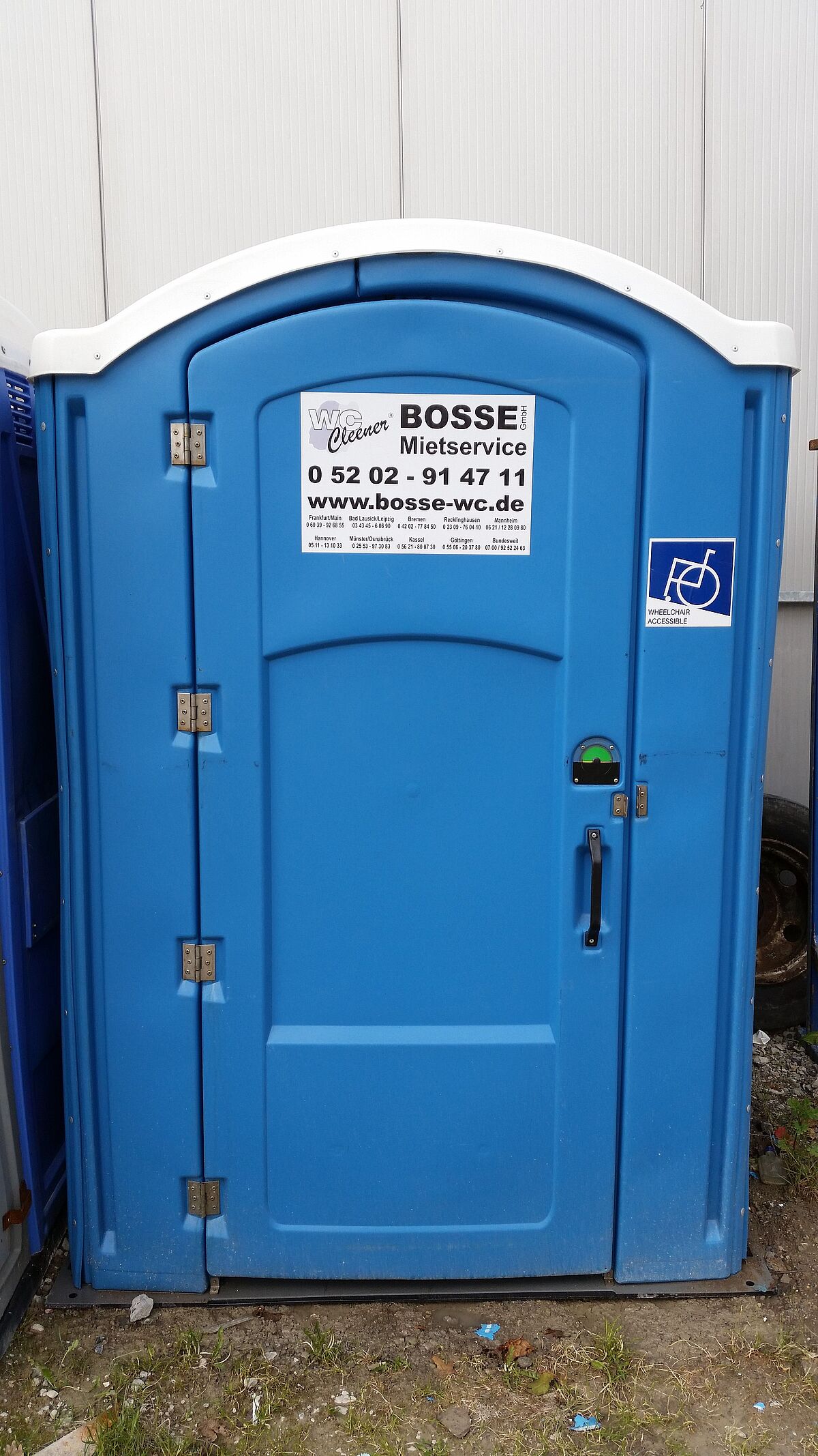 Unsere WC-Kabinen haben folgende Maße: (L / B / H) 1.60m x 1.60m x 2.25m, Gewicht: ca. 130kg im leeren Zustand, der Tank hat ein Fassungsvermögen von 160l .